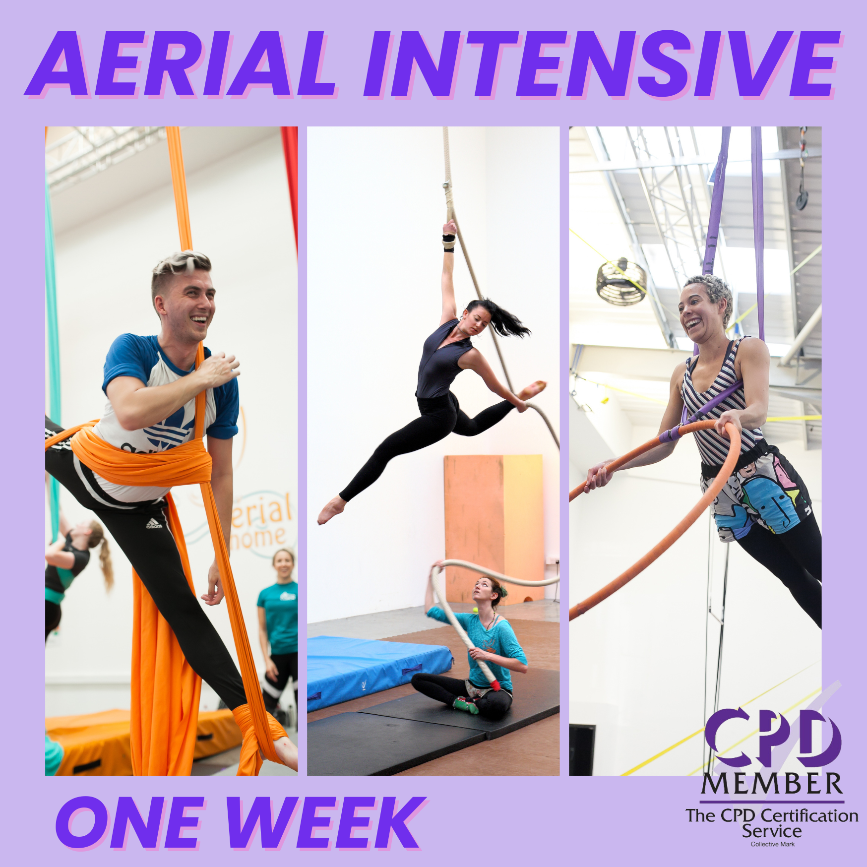 My Aerial Home has a range of professional development courses, certified by CPD. Choose from our Rigging Course (2 days)which is in association with Bryan Donaldson of High Performance Rigging; Our Dancers Intensives (1 week) a great introduction into aerial skills for commercial use; our Teacher Training (1 week)teaching the fundamentals of teaching aerial for all ages and abilities; Our EAC Foundation Course (1 month) a further move towards a professional aerial career or our EAC Professional Course (3 months). What ever you choose we can put you on track to achieve all of your aerial goals.